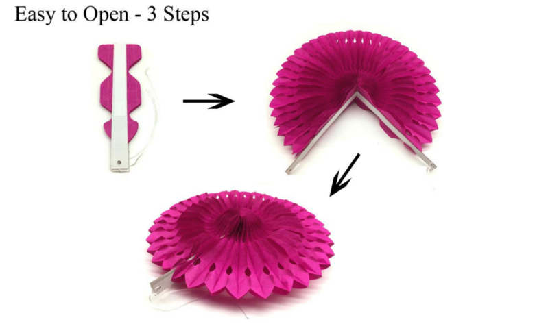 25cm hollow paper fan 4 (Rose Red 2 pink 2)