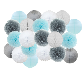 21pcs Blue/Silver Paper Party Lantern/PomPom Decoration Set