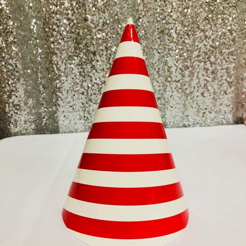 12pk - Large Paper Party Hat Red Stripe