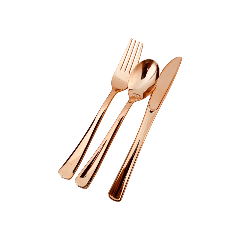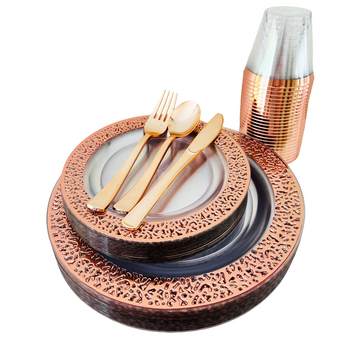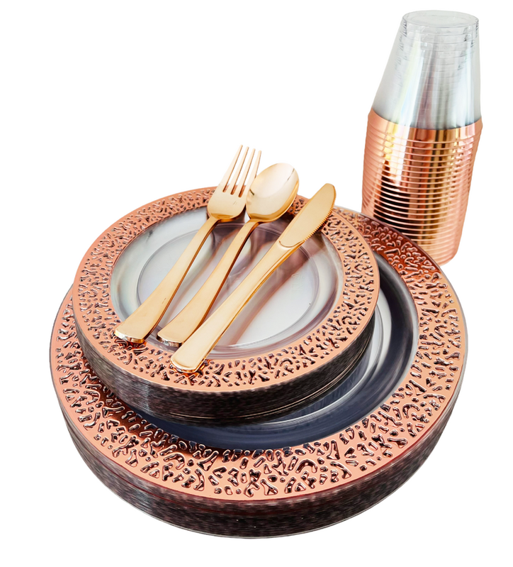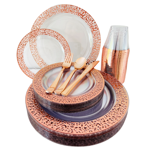 25 Person 150pc Plastic Dinner Plate Set - Rose Gold/Clear