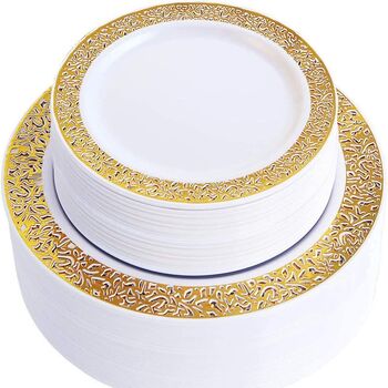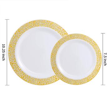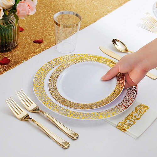 25 Person 150pc Plastic Dinner Plate Set - White/Gold
