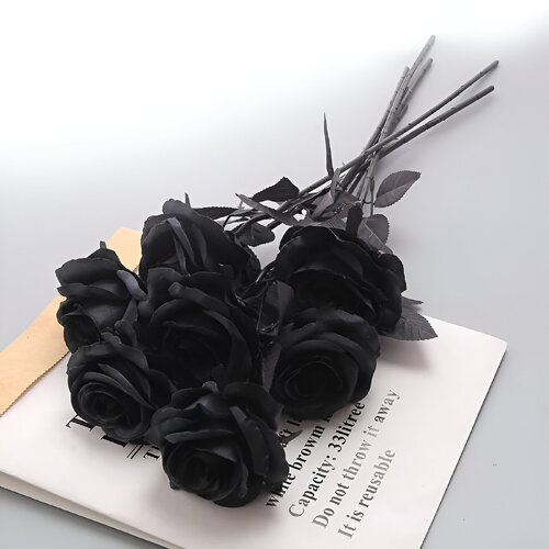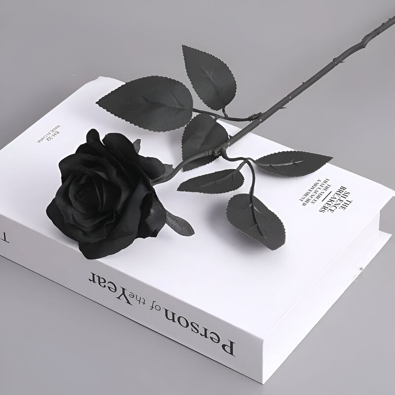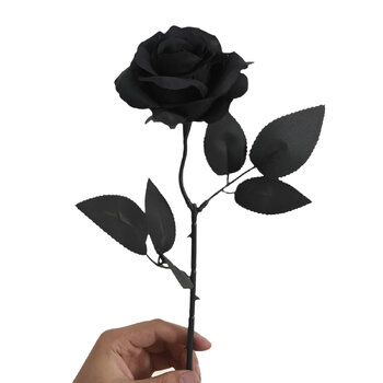 48cm - Single Stem Open Rose - Black
