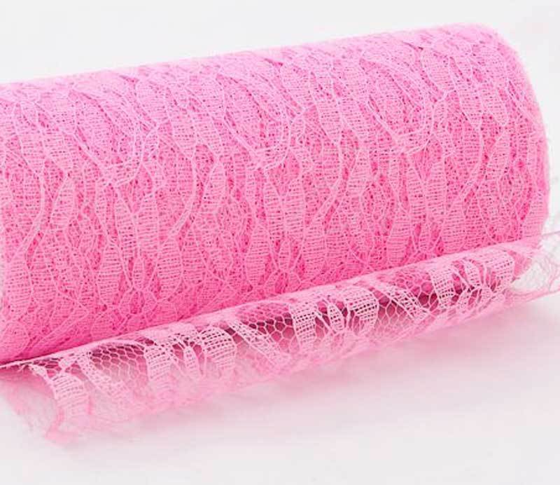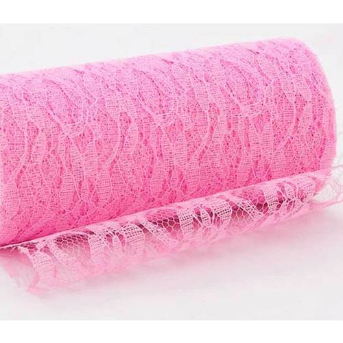Pink 6inch x 11yd Lace Design Tulle Roll