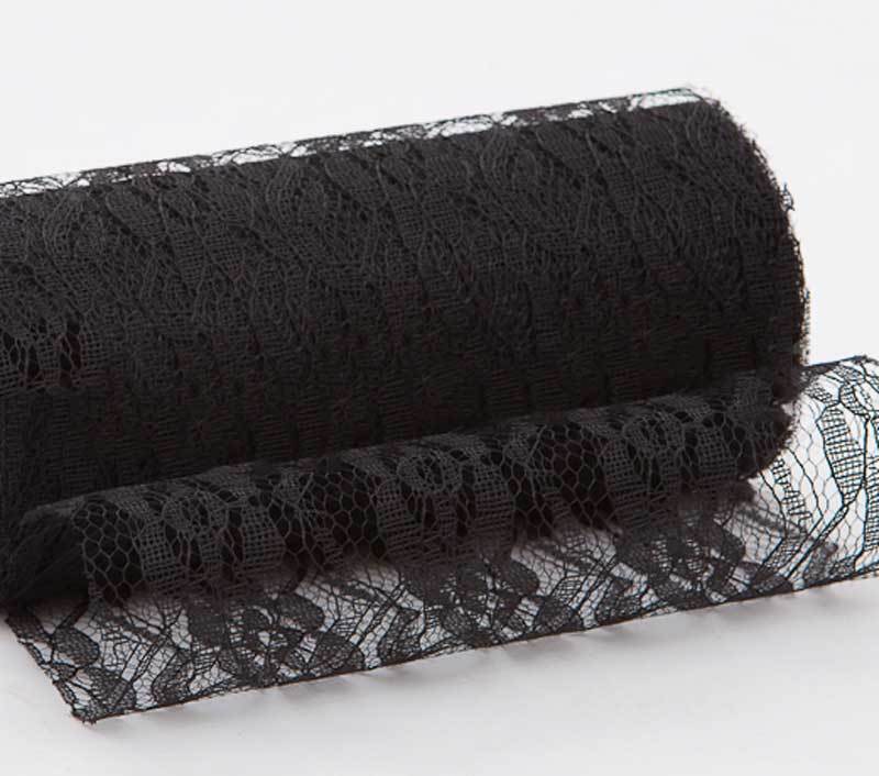 Black 6inch x 11yd Lace Design Tulle Roll