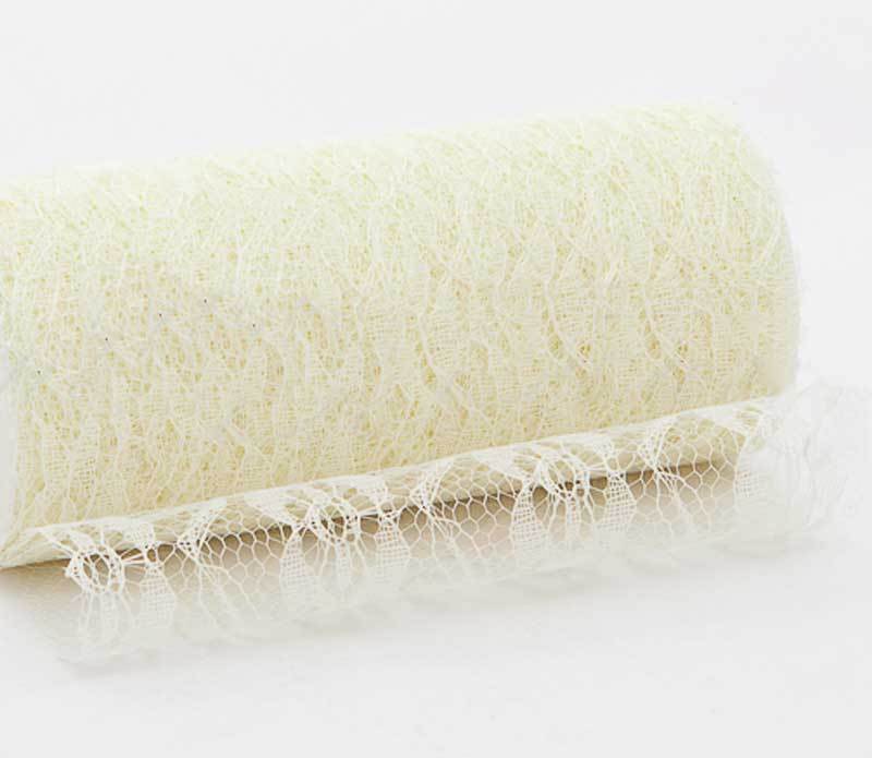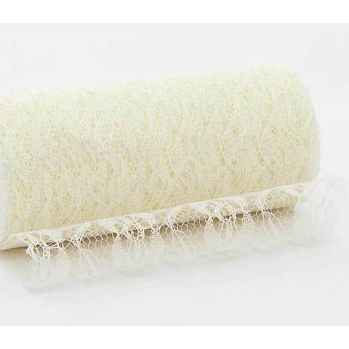 Ivory 6inch x 11yd Lace Design Tulle Roll