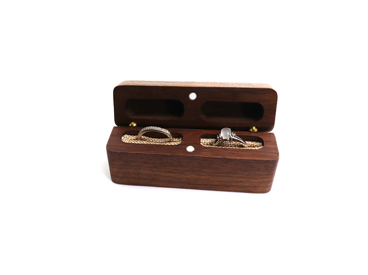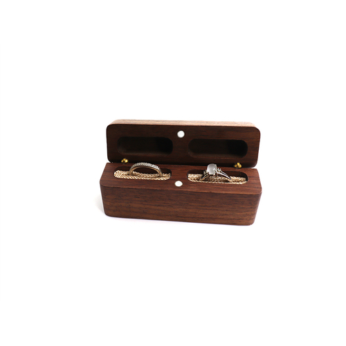 Timeless Classic Wooden Design adds a touch of sophistication to your special day. Its sleek dark wood exterior and plush interior make it the perfect vessel for your precious wedding rings.