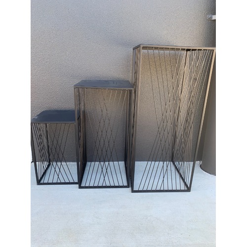 3pc Set - Pure Matt Black Flower Plinth/Centerpiece Stands Style 1
