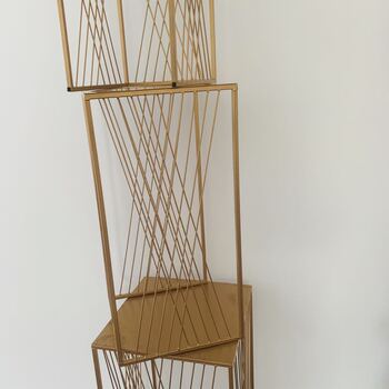1. The gold is a different colour to our other metal flower stands and arches however the paint does not have the gloss surface. They are a more an antique gold however the photo is a little light for the colouring, please note they will be a few shades darker but still a true gold. The colour is very hard to capture in its true form, the photos of the top plates are closer to the real colour.