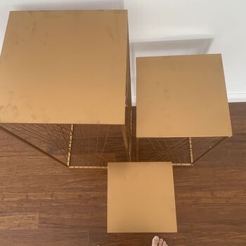 2. Due to the paint used to capture the true gold colour there are fingerprints and marks in places on the top plates, this is to be expected when you order. Some marks can be removed others may not be able to, square mirrors or cake bases will cover these if you are concerned. Please view all photos so you can see these marks we will not accept refund for this reason.