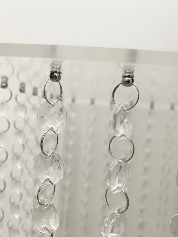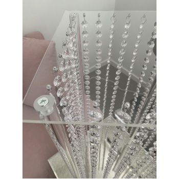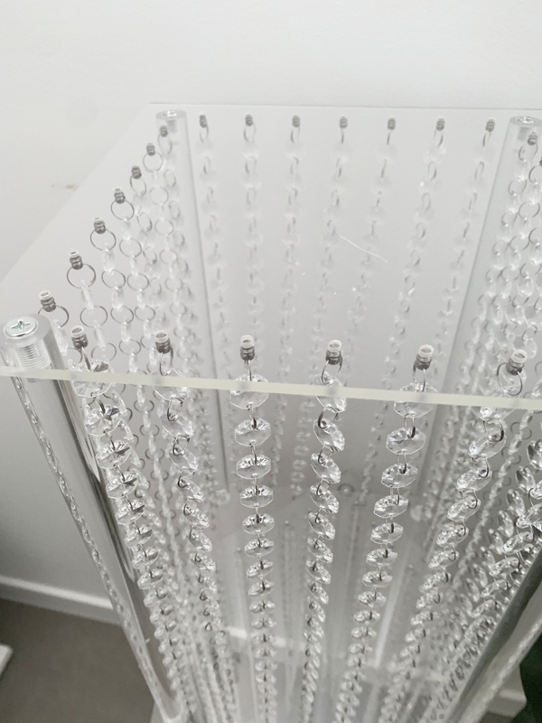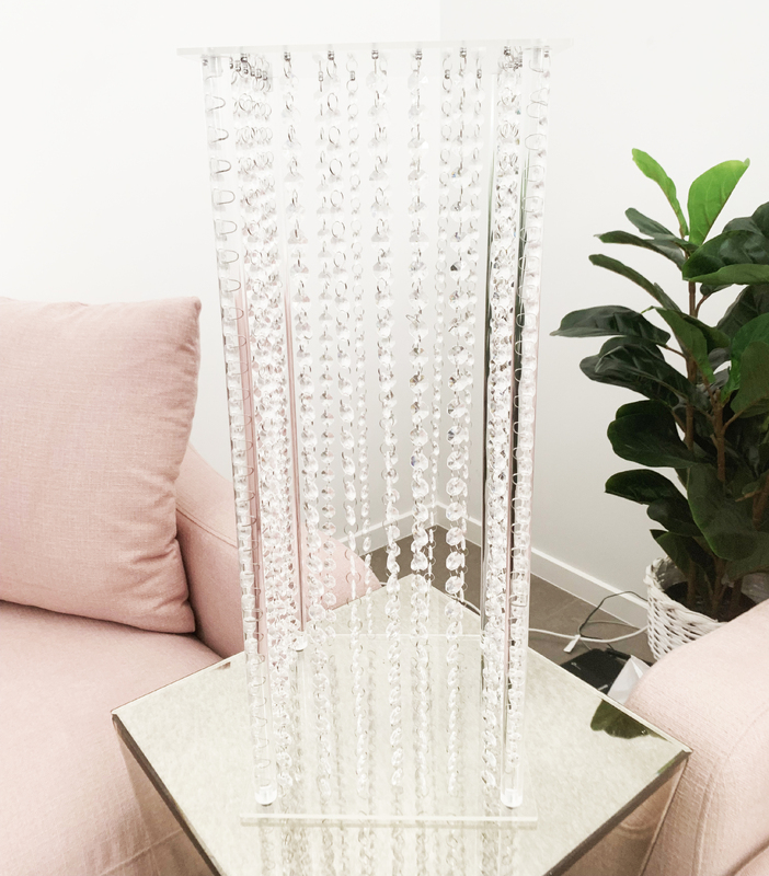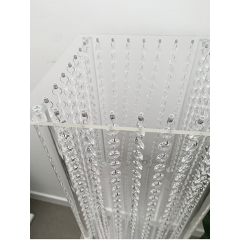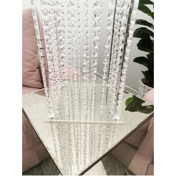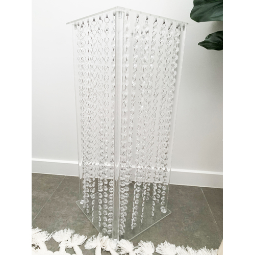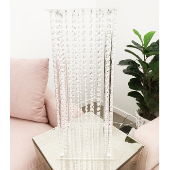 Clear Acrylic Riser with hanging crystals - These are great versatile items to use as centrepieces or floor pedestals to hold floral arrangements