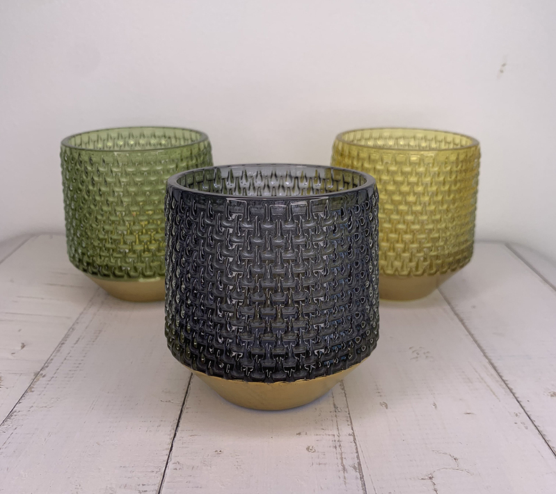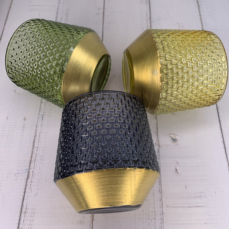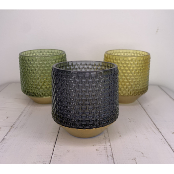 8cm - Green W/ Gold Base Tea Light/Votive Candle Holder