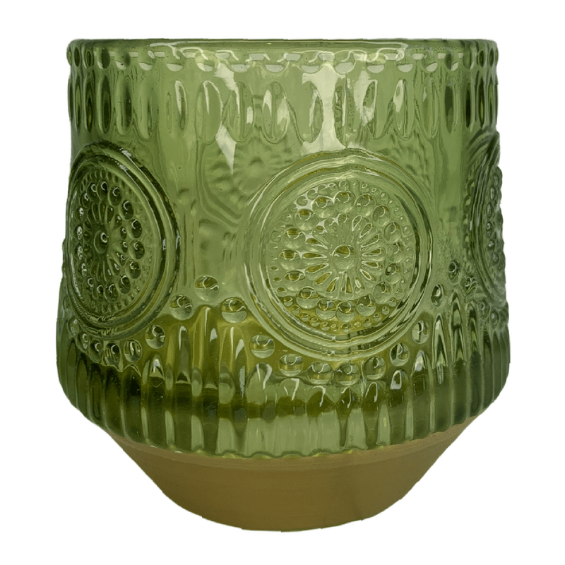 8cm - Patterened Green Gold Based Tea Light/Votive Candle Holder