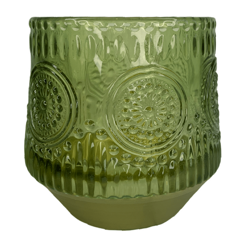 8cm - Patterened Green Tea Light/Votive Candle Holder