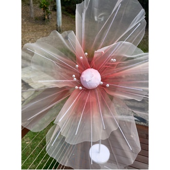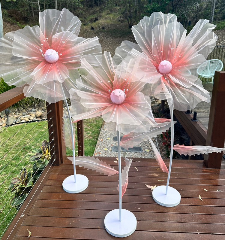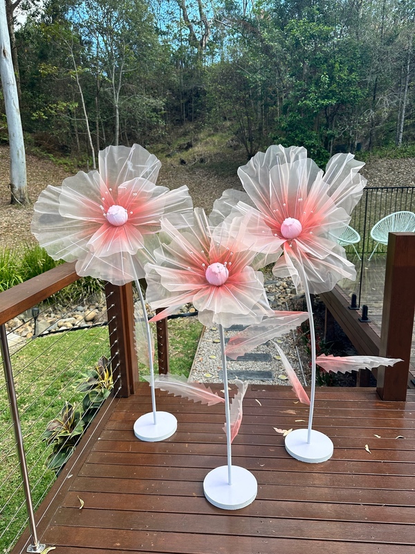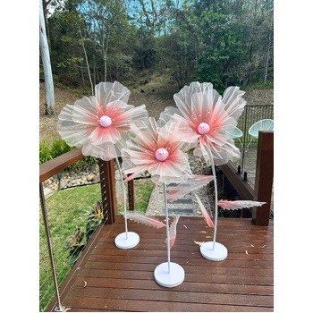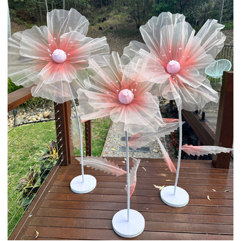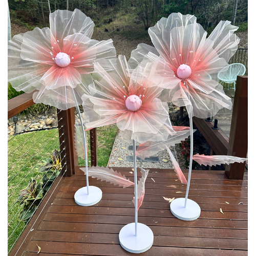 Set of 3 Peach Giant Organza Flower Stands - 1.7m, 1.4m, 1.2m
