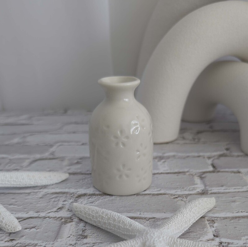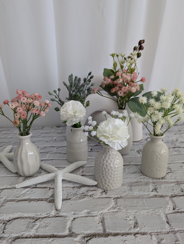 Add a charming touch to your home decor or event styling with our 7.3cm Mini Ceramic Vase - Style 3. This petite vase, standing at 7.3cm high with a 4.5cm diameter, is perfect for showcasing small floral arrangements or decorative accents. Crafted with high-quality ceramic, it features a sleek and simple design that fits seamlessly into any decor style. Ideal for use as a single statement piece or as part of a larger display, this mini vase is versatile and elegant. Please note that flowers, corks, decorations, stickers, or other colored vases shown in the photograph are not included and can be purchased separately.