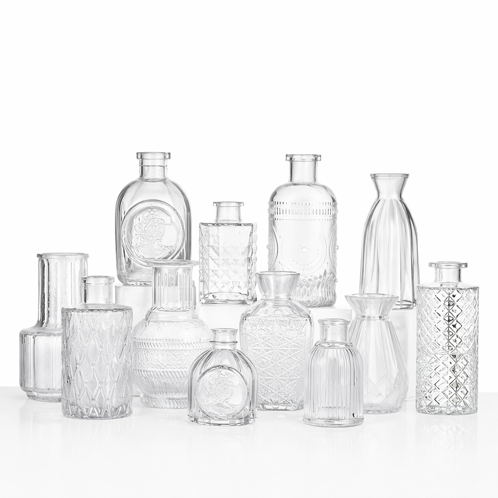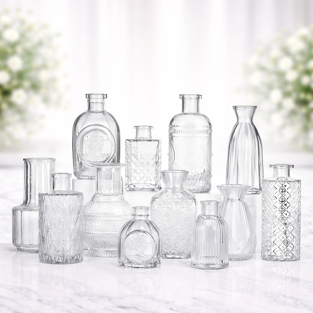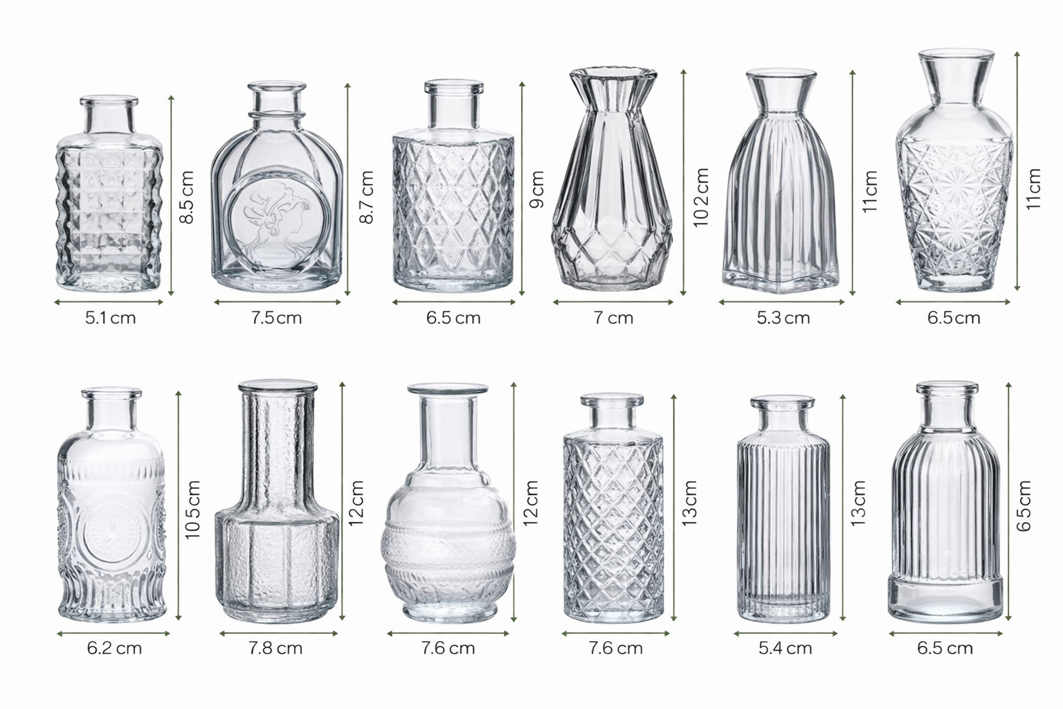 Clear Glass Bud Vase Set – 12pcs (3 Sizes)