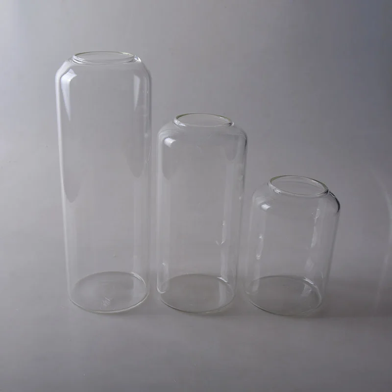 Each vase is made from clear glass with a smooth cylindrical shape, suitable for single stems, small floral groupings, or artificial flowers. The simple design allows flowers to remain the focus while working across a wide range of styling themes.