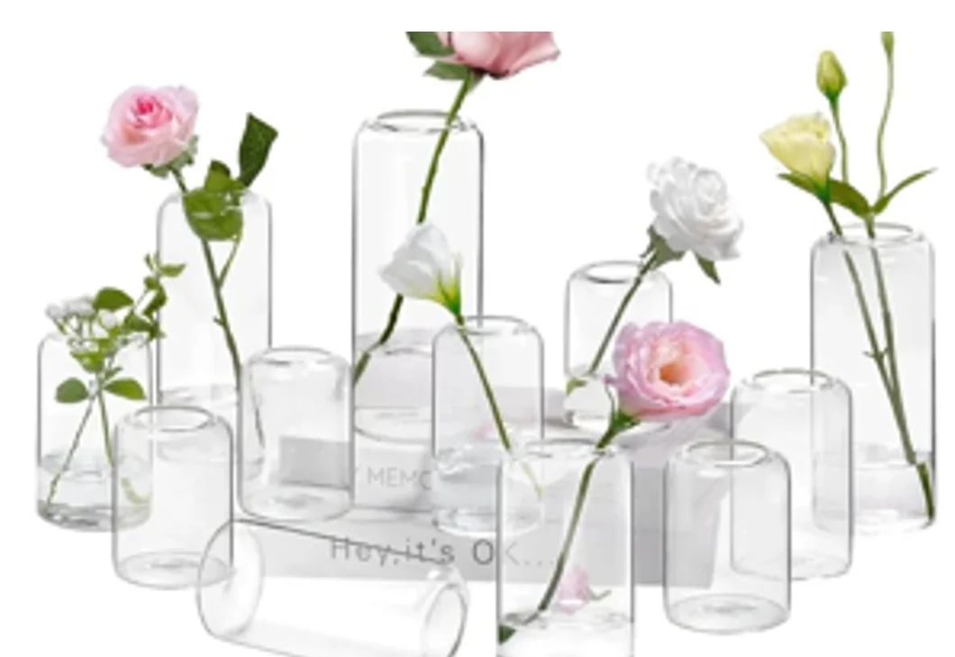 Clear Glass Bud Vase Set of 12 – Mixed Sizes