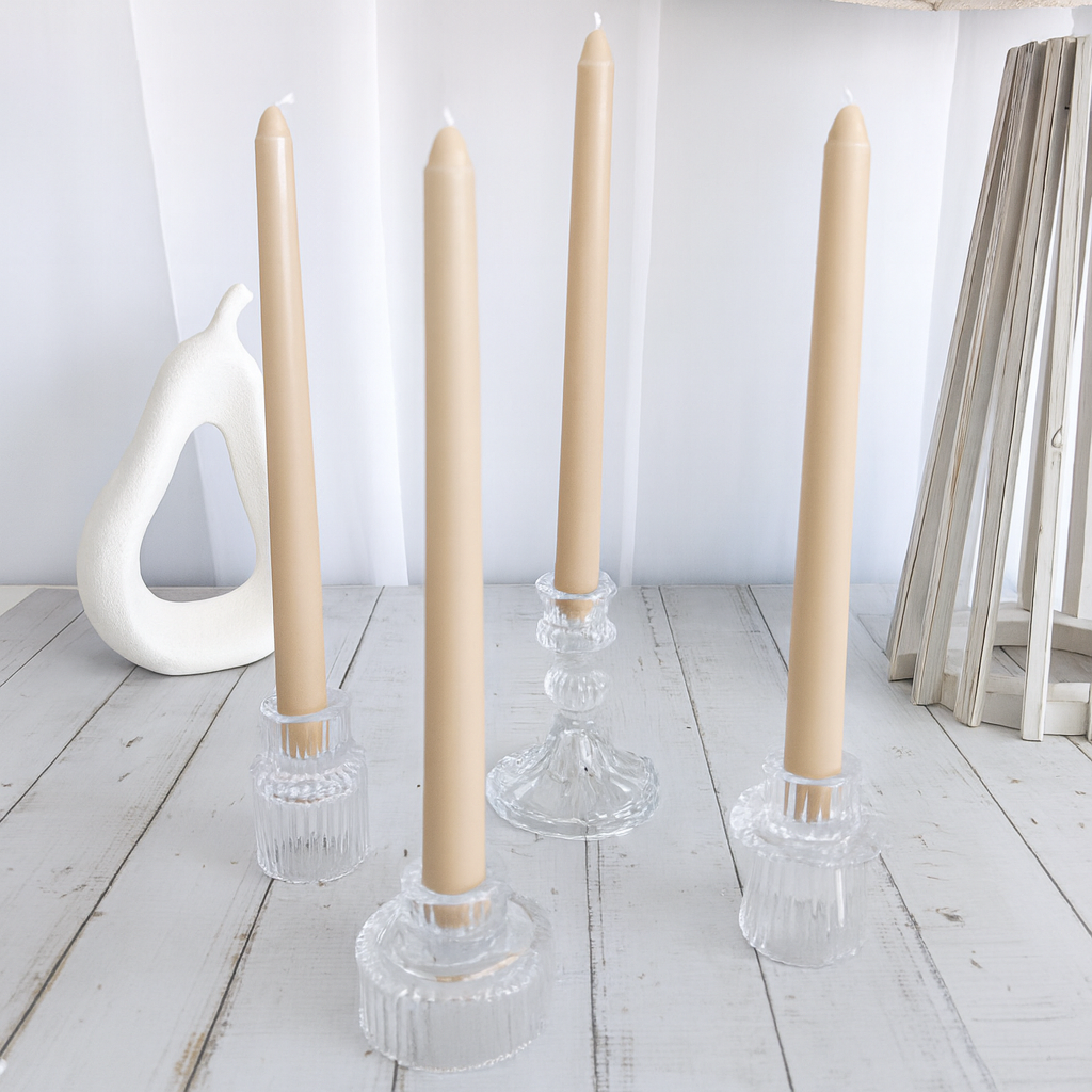 4pcs - 25cm Beige Wax (Taper) Dinner Candle Romantic Candlestick