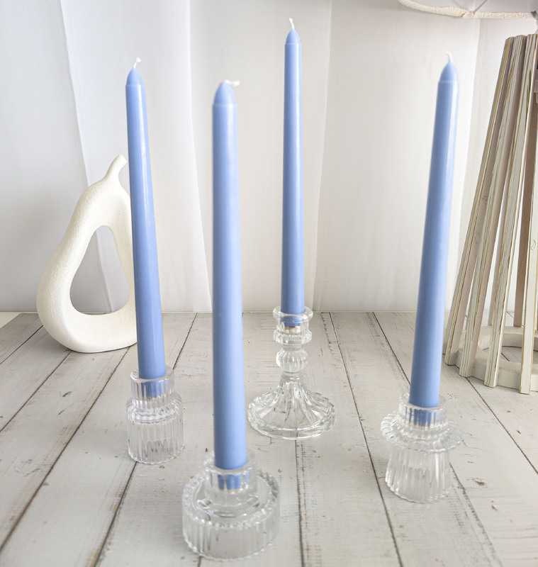 4pcs - 25cm Dusty Blue Wax (Taper) Dinner Candle Romantic Candlestick