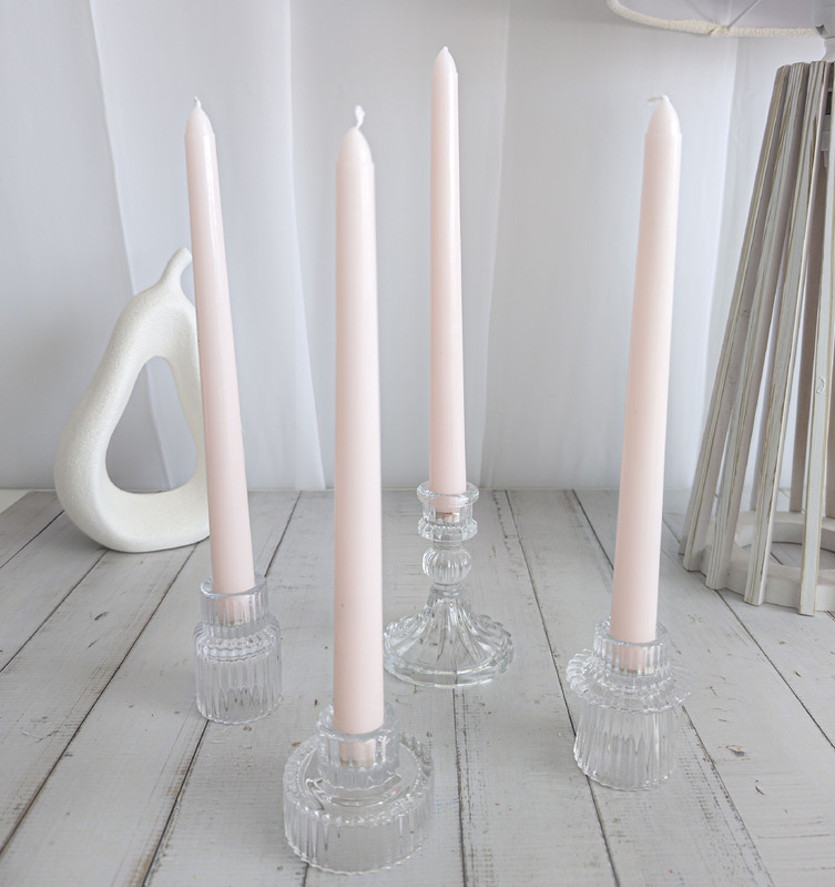 4pcs - 25cm Soft Pink Wax (Taper) Dinner Candle Romantic Candlestick