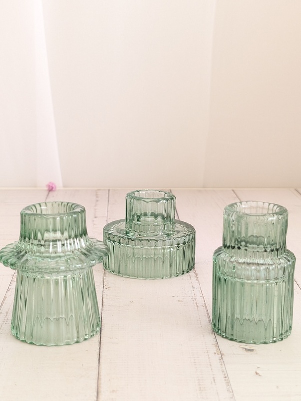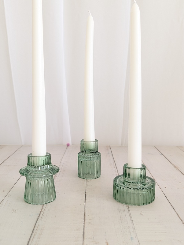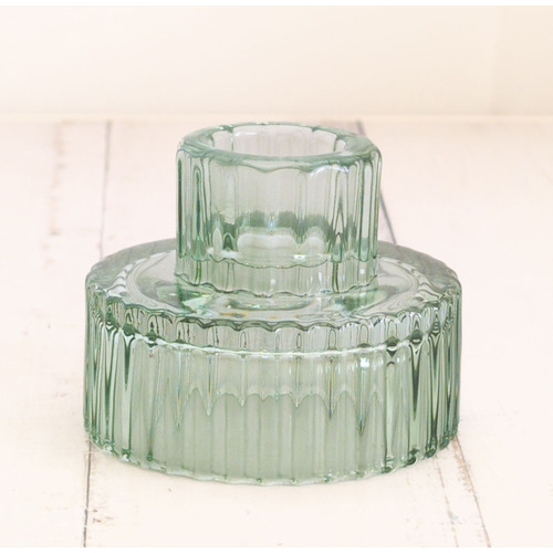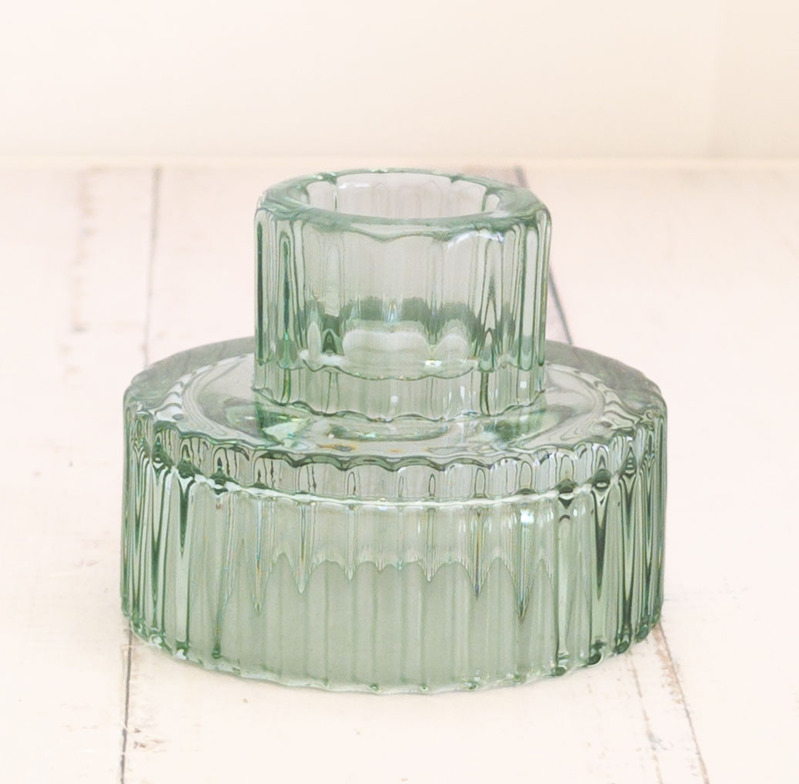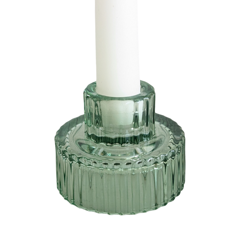 Sage Green - Ribbed Glass Taper/Dinner Candle Holder - Style 1