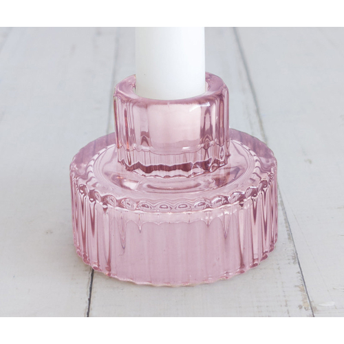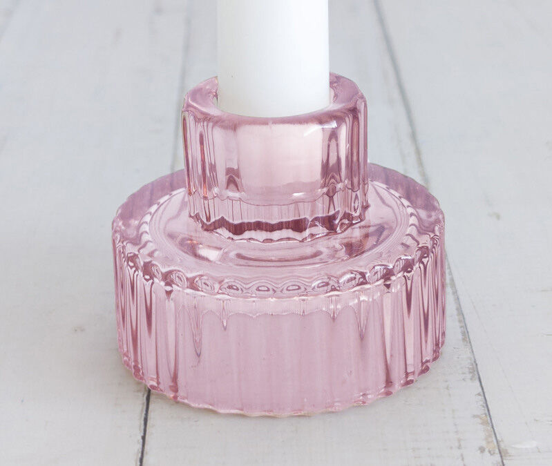 Pink - Ribbed Glass Taper/Dinner Candle Holder - Style 1