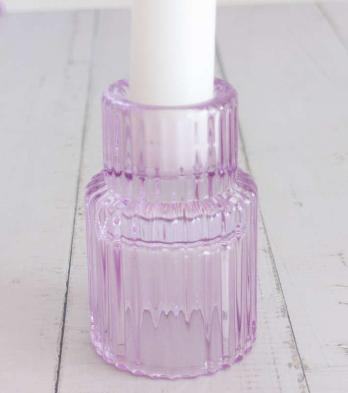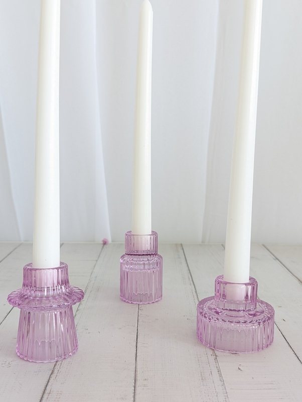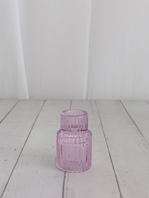 Pinky Lavender - Ribbed Glass Taper/Dinner Candle Holder - Style 2