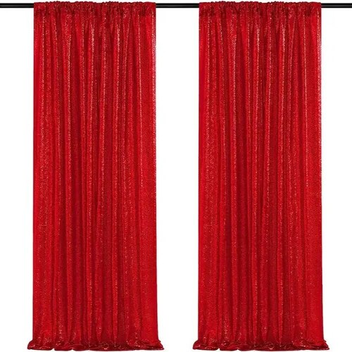 2pc Set Sequin Backdrop Curtains 60x245cm - Red
