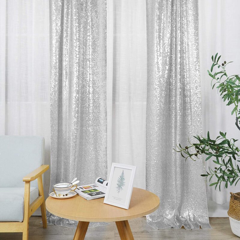 2pc Set Sequin Backdrop Curtains 60x245cm - Silver
