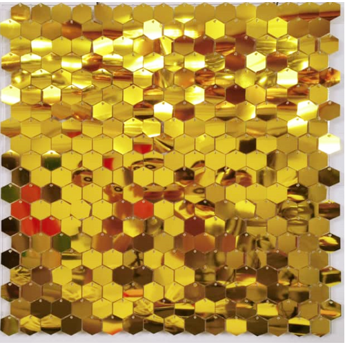 Gold Sequin Hexagonal Shimmer Panel Backdrop Wall/Curtain Mirror Finish