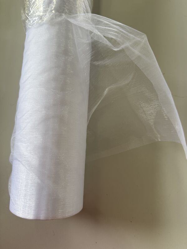 This roll is cut from a continuous piece of 100% nylon fabric with no seams. The 20gsm weight offers a fine, transparent finish while still holding its structure for bows, ties, and swags.