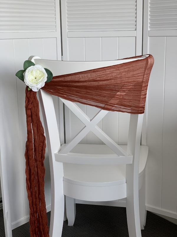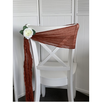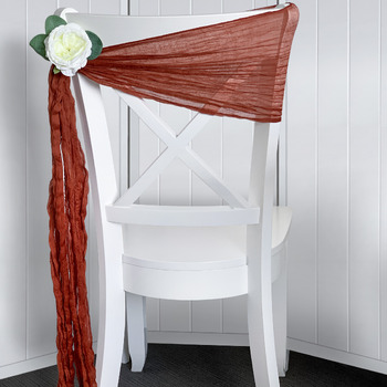 Embrace the rustic warmth of our Rust Cheesecloth Chair Sashes and create a truly unforgettable wedding day.