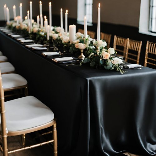 - "I was hesitant to try a non-traditional colour for my formal dinner party, but the black satin tablecloth was a perfect choice. It looked amazing and really elevated the overall look of the table." - John