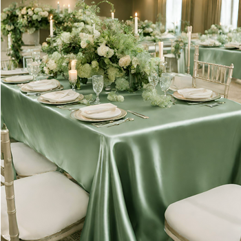 Elevate your event decor with the captivating Dusty Willow satin tablecloth. Whether it's a wedding, banquet, or any special occasion, this tablecloth will add a touch of sophistication and uniqueness to your event. Order now and create memories in style!
