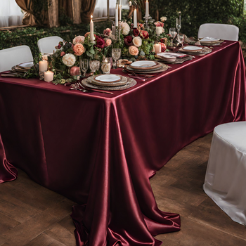 - Luscious Burgundy Eludes Luxury: The rich burgundy colour of this satin tablecloth exudes elegance and luxury, instantly elevating the atmosphere of any occasion.