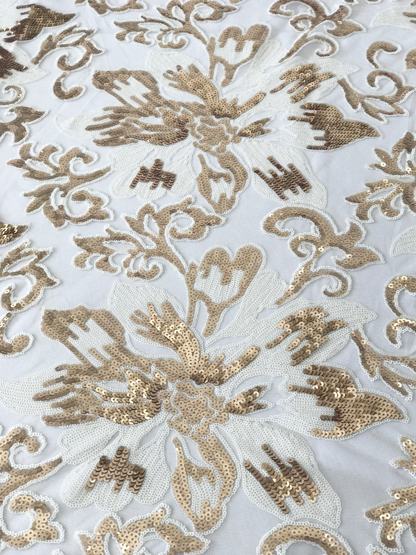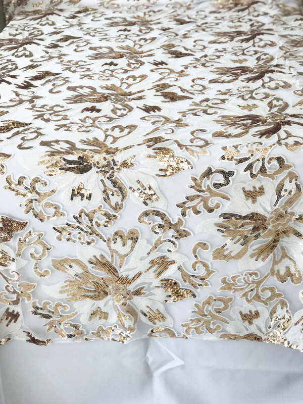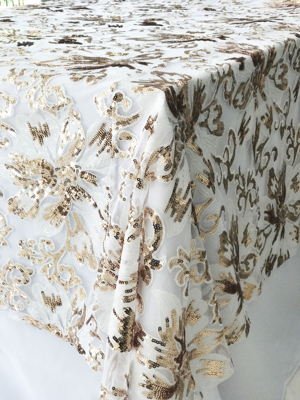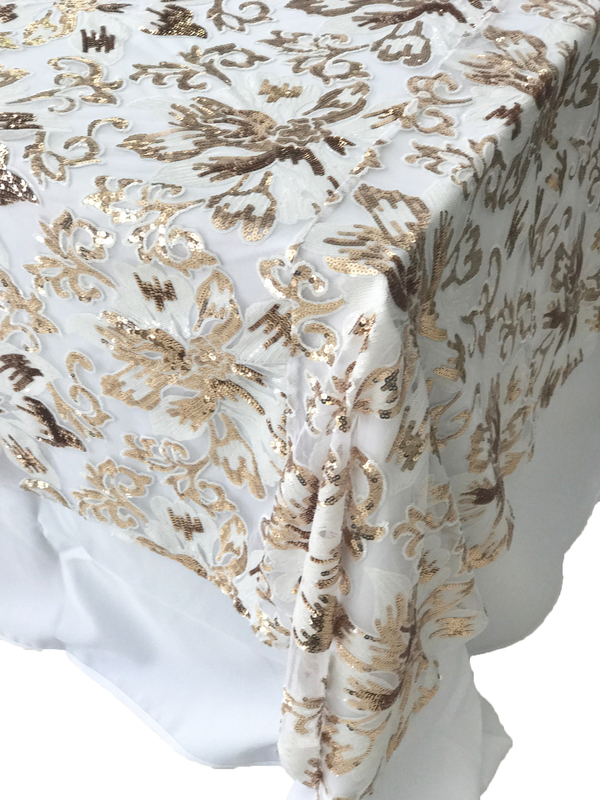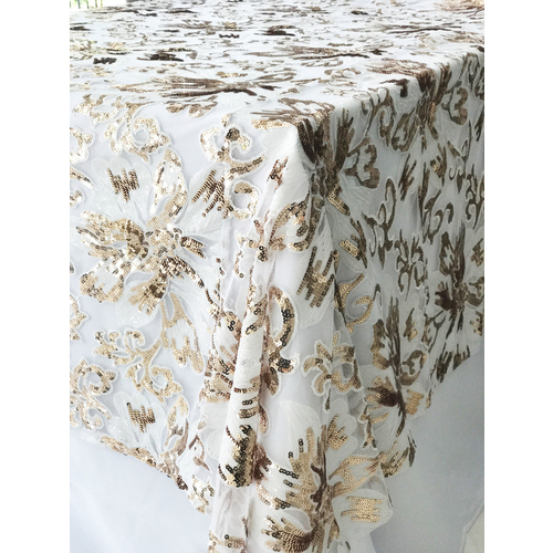 Gold Sequin Floral Table Square Overlay 228cm
