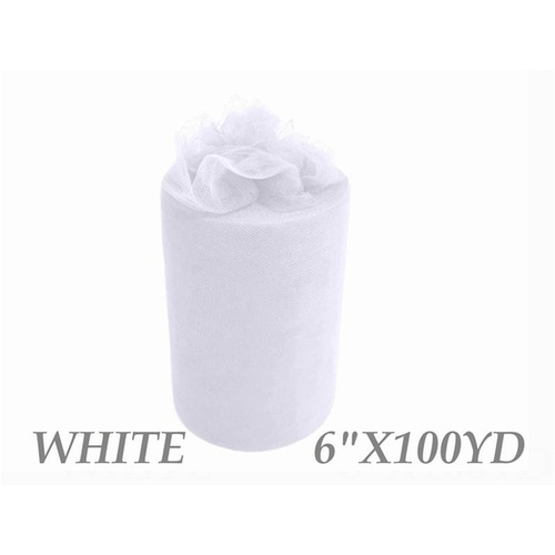 6inch x 100yd Quality Tulle Roll - White