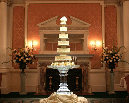 This takes a collaborative effort between you and the baker. Essentially, what happens is the cake is covered in white fondant. This will allow the wedding cake to turn into a projection screen where you can project pictures and home movies. The cake is 100% edible; it just serves as a projection screen for the first part of the wedding reception.